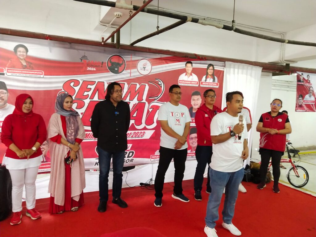 Juruketik.com – Dewan Pimpinan Cabang (DPC) Taruna Merah Putih (TMP) Kota Bogor menggelar senam sehat dan lomba makan bakso yang di ikuti ratusan kaum ibu dari seluruh wilayah Kota Bogor. Acara digelar di basement gedung DPRD Kota Bogor, Jalan Pemuda, Kecamatan Tanah Sareal, dan dihadiri Ketua DPD PDI Perjuangan Jawa Barat Ono Surono, Ketua DPC PDI Perjuangan Kota Bogor Dadang Danubrata, Ketua TMP Jabar Niko Rinaldo, Ketua TMP Kota Bogor Iwan Iswanto, anggota DPRD Fraksi PDIP R. Laniasari dan jajaran pengurus DPC PDI Perjuangan Kota Bogor.
