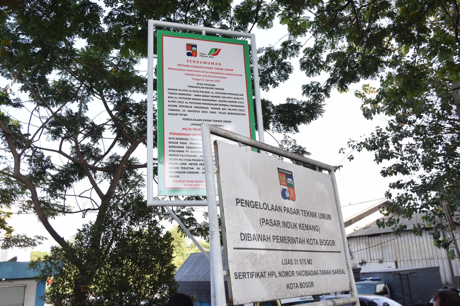 Akhirnya Pengadilan melaksanakan proses eksekusi tetap dilanjutkan dengan terlebih dahulu melakukan Sita eksekusi Terhadap objek Pasar Teknik Umum (Pasar Induk Kemang) pada 26 Juni 2023 terhadap Pasar Teknik Umum dengan tanah bangunan seluas 31.975M2 kemudian dilakukan kontatering bersama dengan BPN Kota Bogor pada tanggal 28 Juli 2023. Sebelum dilaksanakan eksekusi, Pengadilan Negeri Bogor sesuai dengan tahapan Prosedur Proses eksekusi terlebih dahulu melakukan rapat kordinasi sebanyak 2 (dua) kali bersama Polresta Bogor Kota, Kodim 0606, Denpom III/1 Bogor, Satpol PP serta Polsek Tanah Sareal, Danramil Tanah Sareal, Camat Tanah Sareal serta Lurah Cibadak pada tanggal 30 Agustus 2023 dan tanggal 14 September 2023 di kantor Pengadilan Negeri Bogor.