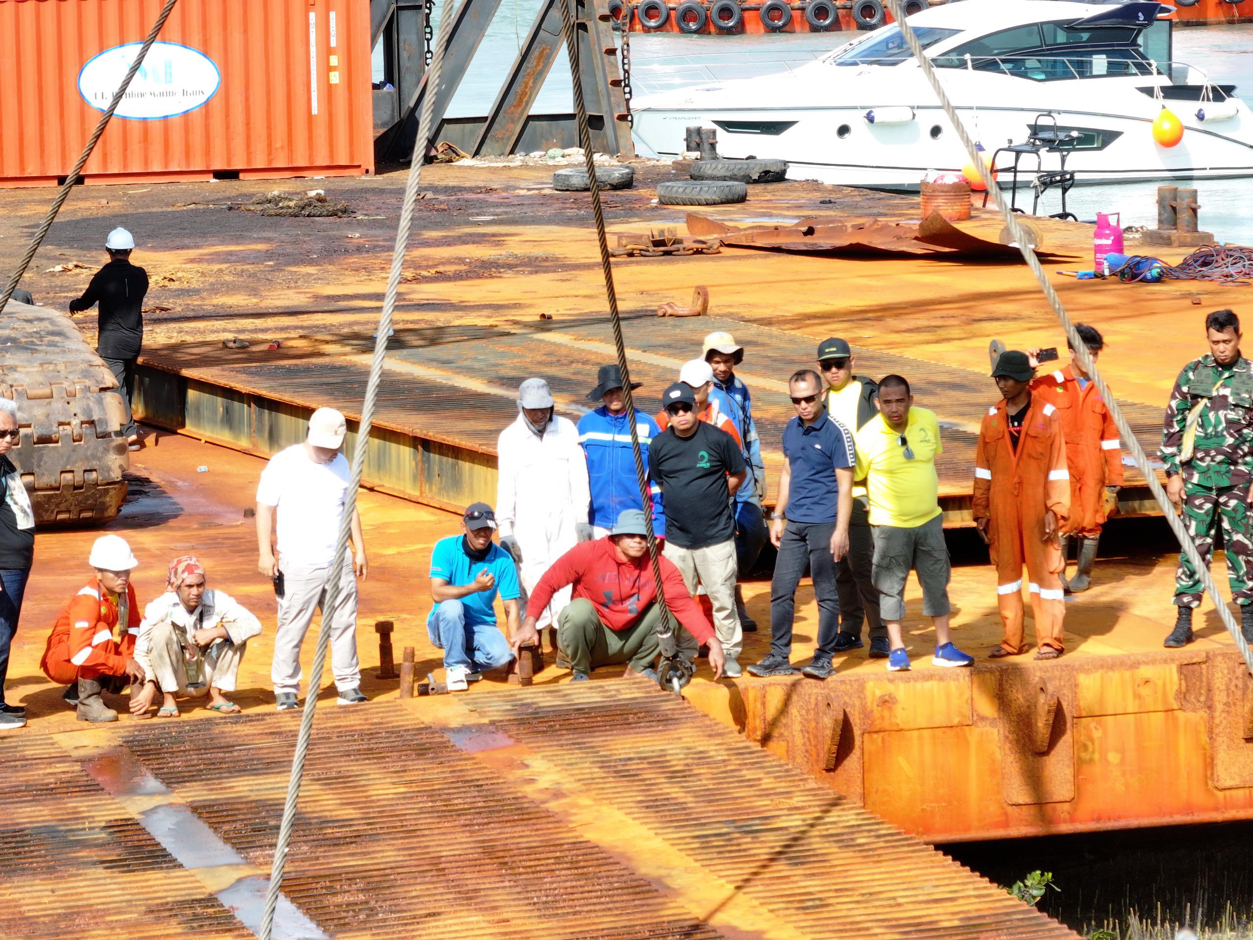 Dikatakan H Deden, proses bongkar muat alat berat dari tongkang ke pelabuhan dipimpin langsung owner Jhonlin Group H Isam.