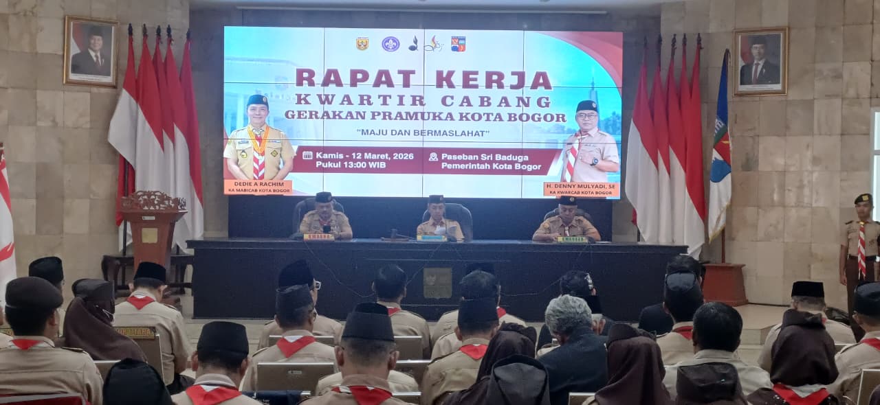 Juruketik.com – Kwartir Cabang (Kwarcab) Gerakan Pramuka Kota Bogor menggelar Rapat Kerja Cabang (Rakercab) 2026 di Paseban Sri Baduga, Balai Kota Bogor, Kamis (12/3/2026). Forum tahunan ini menjadi momentum penting bagi organisasi kepanduan tersebut untuk merumuskan program kerja strategis sekaligus memperkuat konsolidasi internal organisasi.