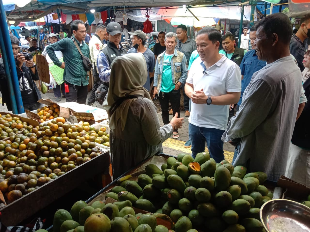 “Jadi hari ini saya kembali lagi ke pasar untuk yang kedua kalinya. Saya menyapa para pedagang, baik pedagang yang ada di dalam toko maupun di luar. Kita tampung aspirasi dari pedagang, nanti kita formulasikan bagaimana membuat lebih rapih lagi dan lebih tertata lagi. Tetapi perekonomian masyarakat tetap bisa kita angkat semua,” ucap Rayendra.