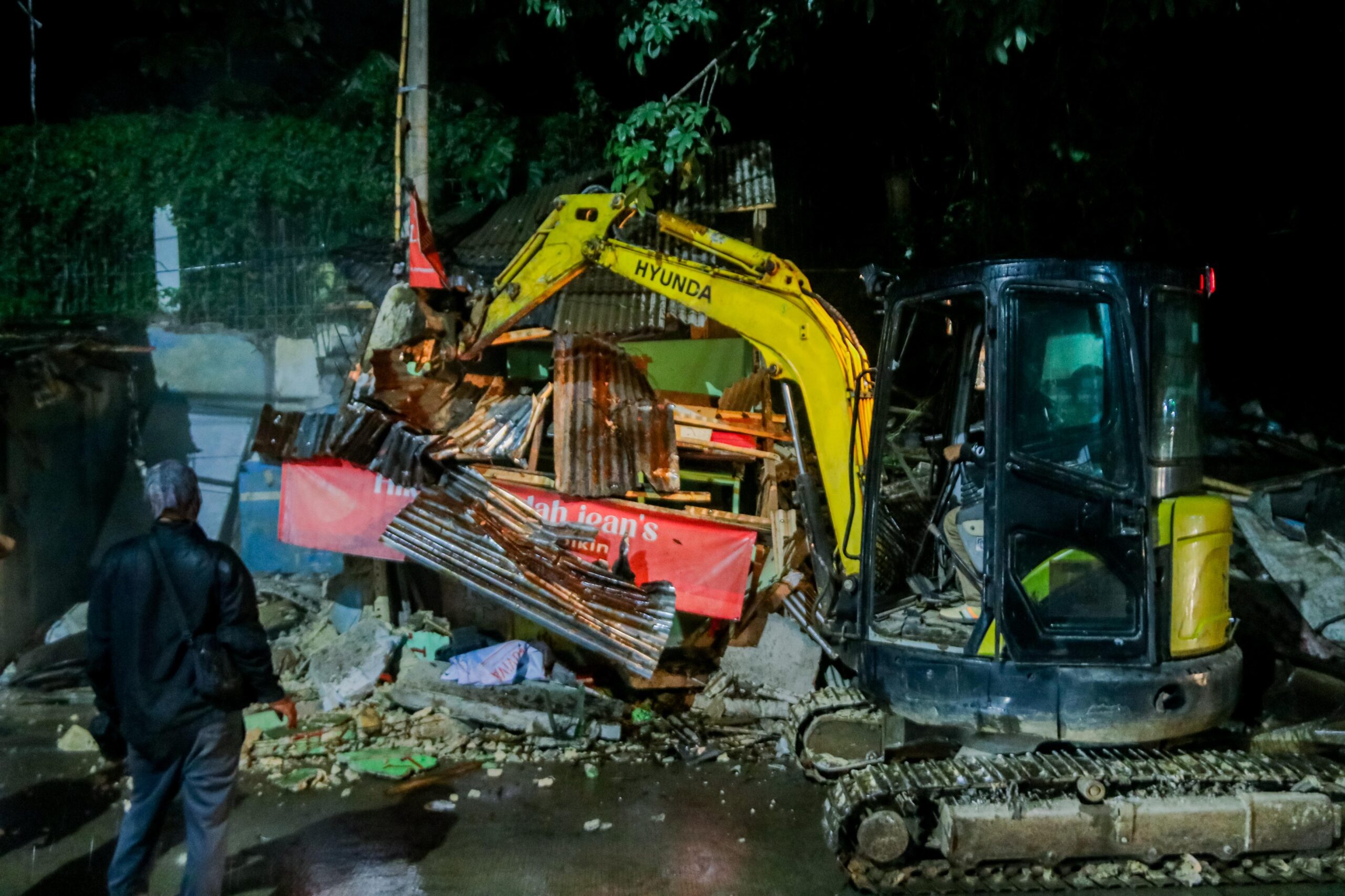 Jenal Mutaqin turun langsung membongkar bangunan liar tersebut pada Jumat (28/3) malam, di sekitar Jalan Pancasan, Kecamatan Bogor Barat. Menggunakan alat berat, bangunan-bangunan tersebut dirobohkan tanpa ada perlawanan dari pemiliknya.